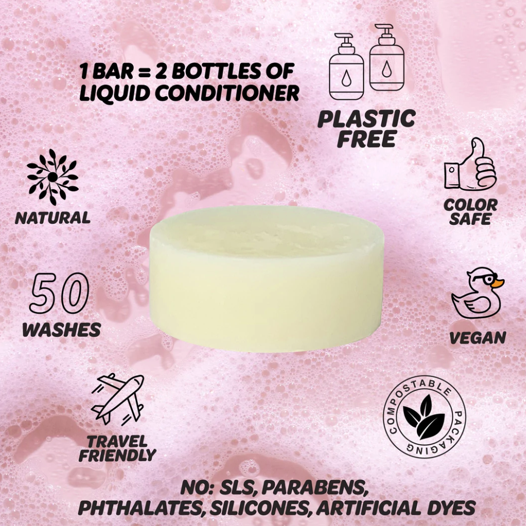 • Long lasting: 50+ washes per bar. 1 concentrated solid conditioner bar is equivalent to two 12 fl oz. bottles of your average bottled liquid conditioner.