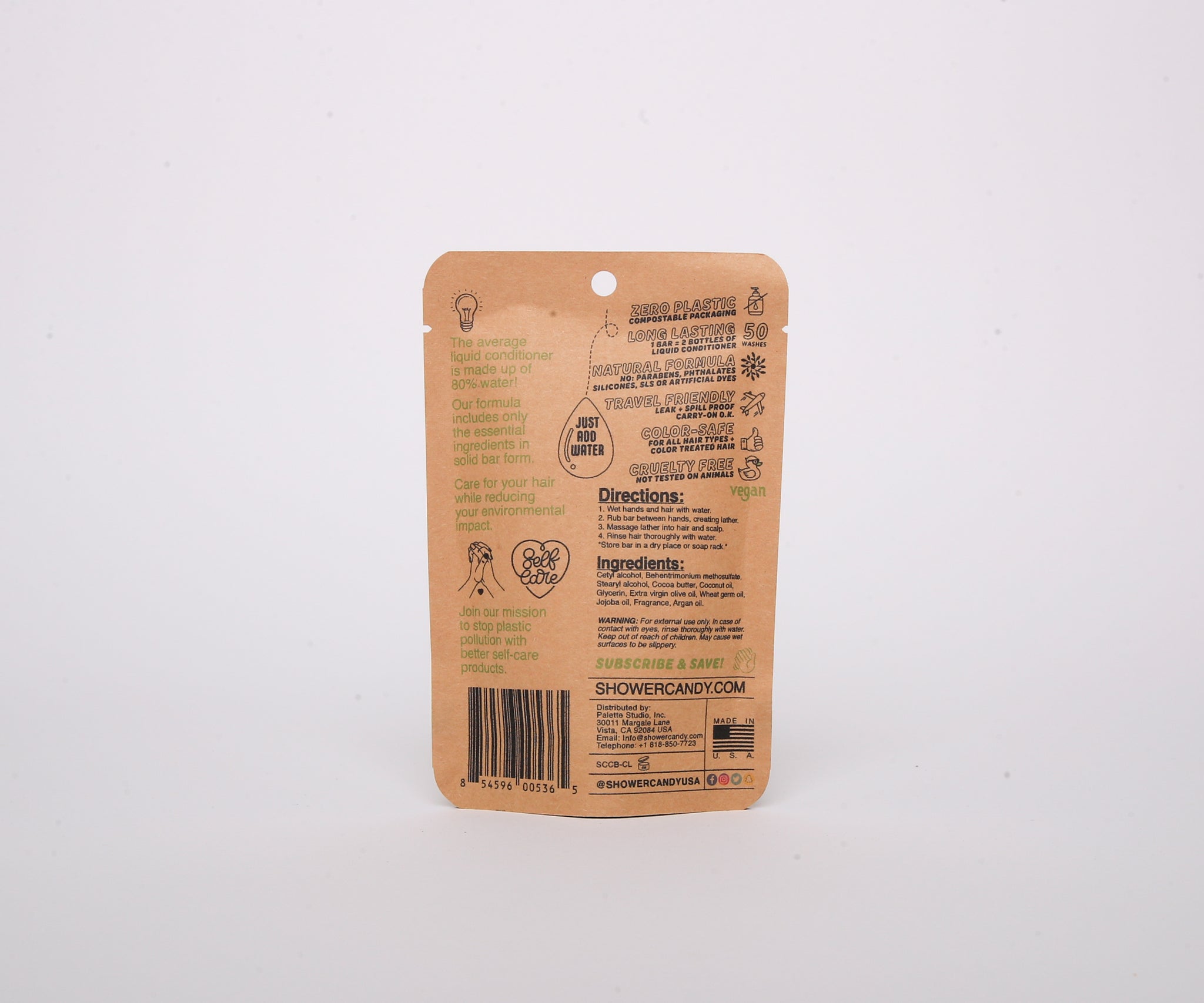• Compact by design, this conditioner bar is a zero waste product. Packed in a compostable pouch and is plastic free.